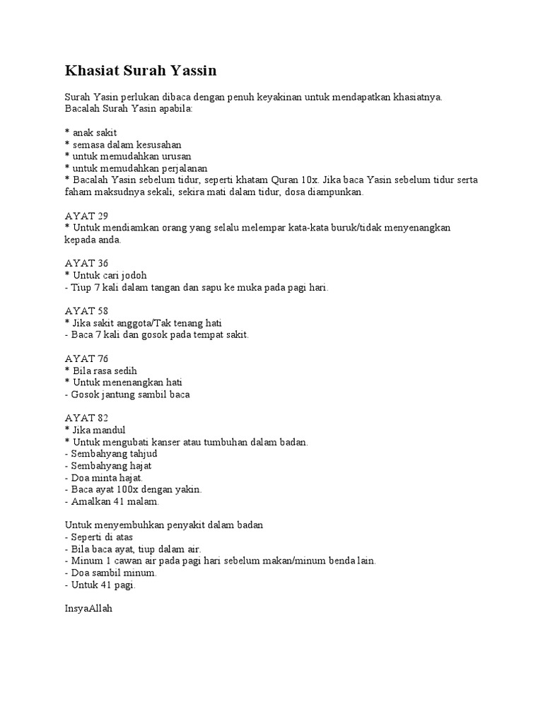 | Baca: Khasiat Surah Yassin |