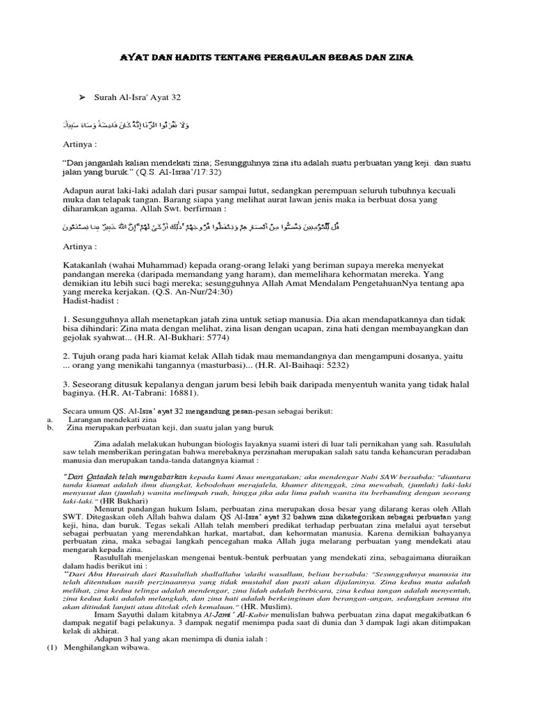 Belajar ayat dan hadits tentang pergaulan bebas dan zina Memahami Makna Ayat dan Hadis Larangan Pergaulan Bebas dan Zina Pergaulan bebas yang dimaksud pada bagian ini adalah pergaulan yang tidak dibatasi oleh. Pelajari jugapergaulan dan ayat dan hadits tentang pergaulan bebas dan zina